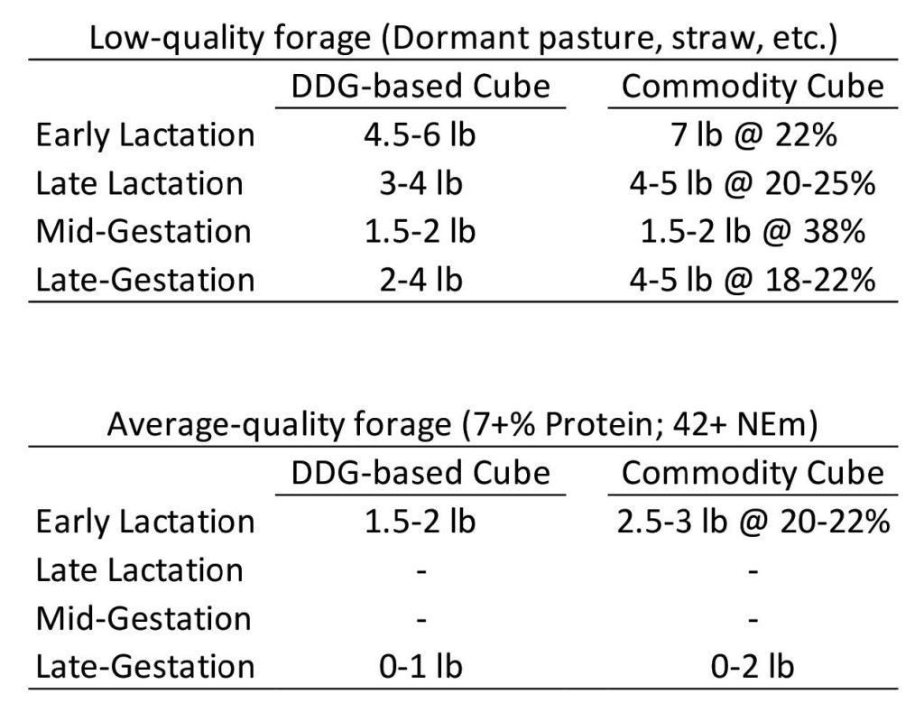 Table 3. Guidelines for supplementing cows on low- and average-quality forage during various production stages.